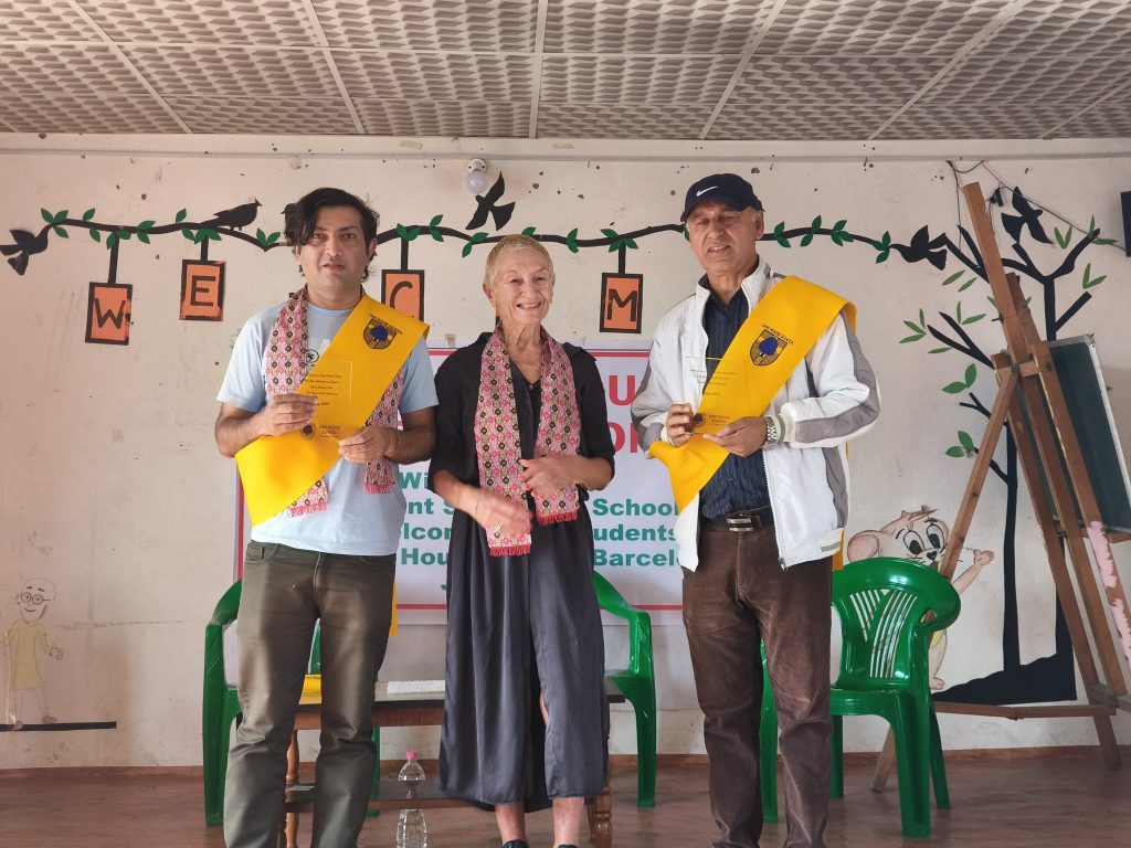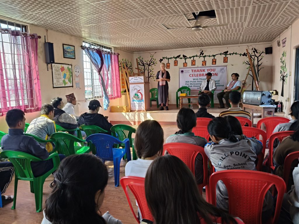 Me complace compartir algunas fotos de la breve celebración de agradecimiento en la Escuela Secundaria Hill Point de Pokhara, Nepal, personalmente y en nombre de Oak House School Barcelona, por recibir a un grupo de 21 estudiantes de OHS y 3 profesores el verano pasado durante su viaje de 3 semanas a Nepal.