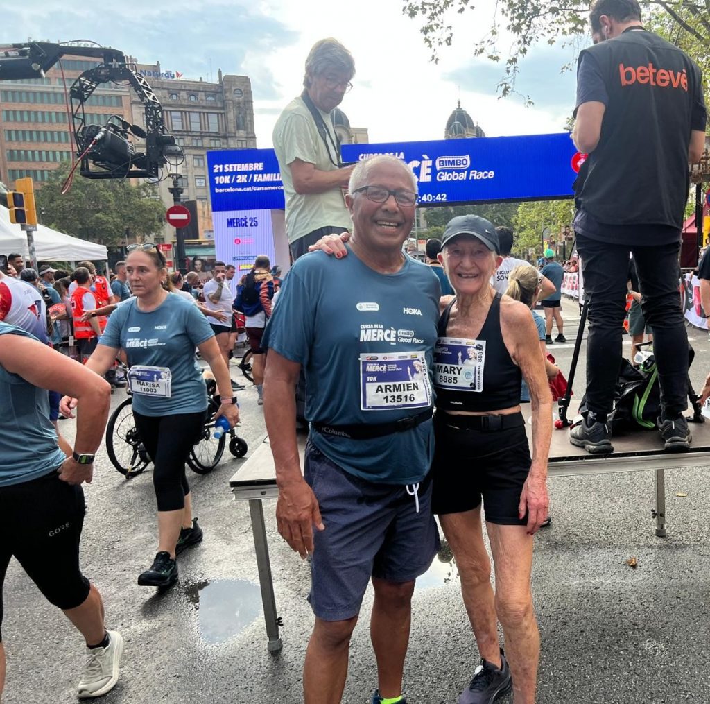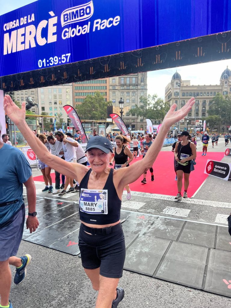 Mary hoy también ha recibido energía positiva de un sudafricano con quién ha corrido casi toda la cursa, que está de vacaciones con su familia en Barcelona, y se ha motivado al ver a Mary, a sus 80 años, correr por esos 7 niños. El mundo está lleno de gente solidaria y cordial.