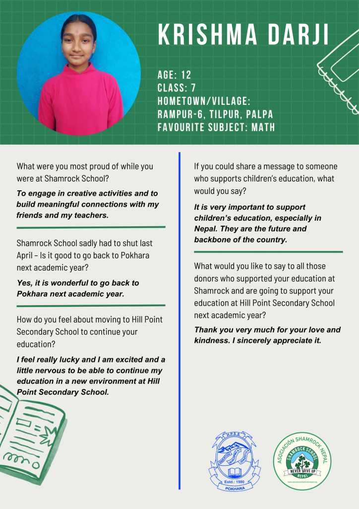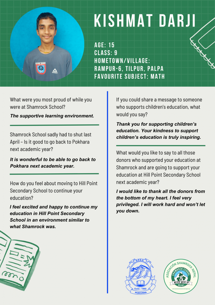 Estos estudiantes de Shamrock 7, en la foto, están llenos de emoción mientras se preparan para comenzar su etapa de secundaria en la Escuela Secundaria Hill Point en Nepal. El año académico 2025-2026 comienza este abril, y esperan con ilusión este nuevo capítulo.